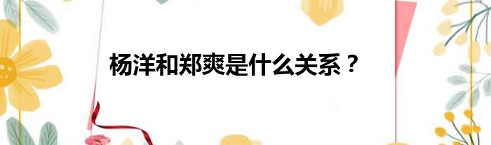 关于杨洋和郑爽是什么关系?的介绍到此结束,希望对大家有所帮助。