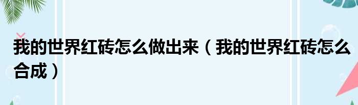 关于我的世界红砖怎么做出来,我的世界红砖怎么合成的介绍到此结束,希望对大家有所帮助。