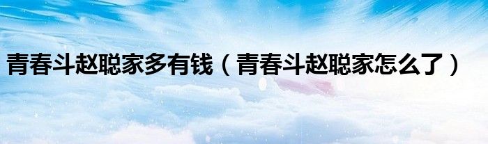 关于青春斗赵聪家多有钱,青春斗赵聪家怎么了的介绍到此结束,希望对大家有所帮助。
