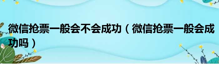 关于微信抢票一般会不会成功,微信抢票一般会成功吗的介绍到此结束,希望对大家有所帮助。