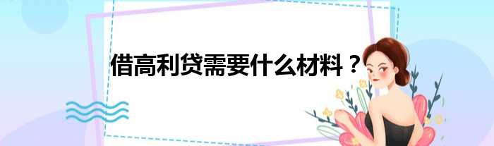关于借高利贷需要什么材料?的介绍到此结束,希望对大家有所帮助。