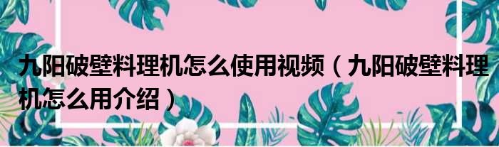 关于九阳破壁料理机怎么使用视频,九阳破壁料理机怎么用介绍的介绍到此结束,希望对大家有所帮助。