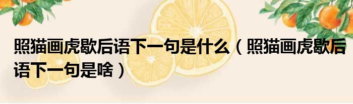 关于照猫画虎歇后语下一句是什么,照猫画虎歇后语下一句是啥的介绍到此结束,希望对大家有所帮助。