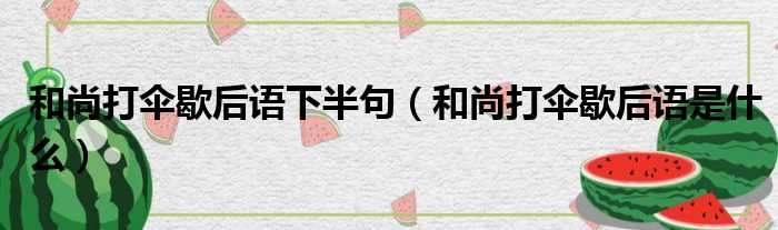 关于和尚打伞歇后语下半句,和尚打伞歇后语是什么的介绍到此结束,希望对大家有所帮助。