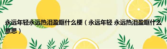 关于永远年轻永远热泪盈眶什么梗,永远年轻 永远热泪盈眶什么意思的介绍到此结束,希望对大家有所帮助。
