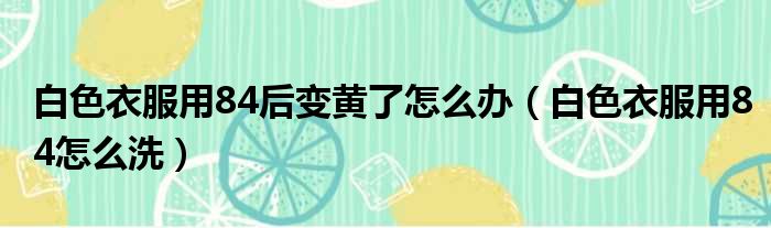 关于白色衣服用84后变黄了怎么办,白色衣服用84怎么洗的介绍到此结束,希望对大家有所帮助。