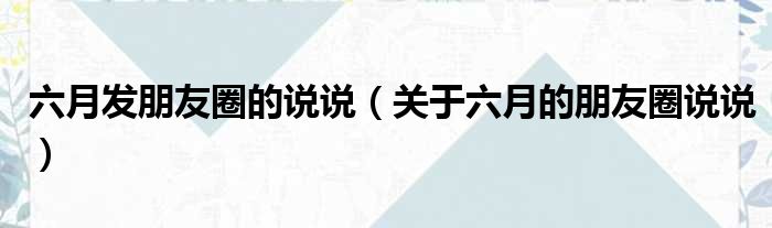 大家好,小纵来为大家解答以上问题。六月发朋友圈的说说,关于六月的朋友圈说说这个很多人还不清楚,现在一起跟着小编来瞧瞧吧!