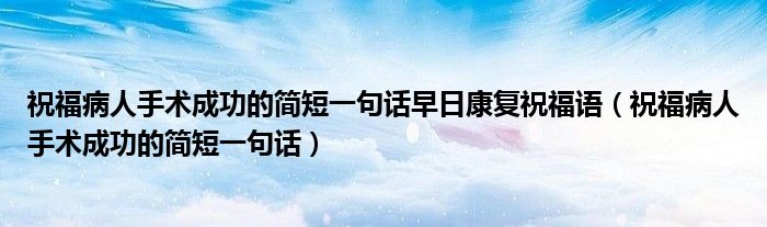大家好,小纵来为大家解答以上问题。祝福病人手术成功的简短一句话早日康复祝福语,祝福病人手术成功的简短一句话这个很多人还不清楚,现在一起跟着小编来瞧瞧吧!