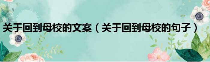 大家好,小纵来为大家解答以上问题。关于回到母校的文案,关于回到母校的句子这个很多人还不清楚,现在一起跟着小编来瞧瞧吧!