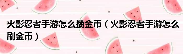 关于火影忍者手游怎么攒金币,火影忍者手游怎么刷金币的介绍到此结束,希望对大家有所帮助。