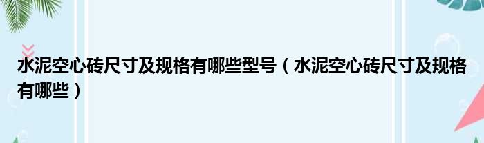 关于水泥空心砖尺寸及规格有哪些型号,水泥空心砖尺寸及规格有哪些的介绍到此结束,希望对大家有所帮助。