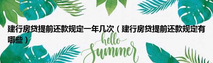 关于建行房贷提前还款规定一年几次,建行房贷提前还款规定有哪些的介绍到此结束,希望对大家有所帮助。