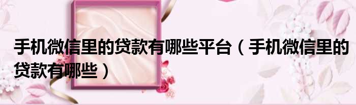 关于手机微信里的贷款有哪些平台,手机微信里的贷款有哪些的介绍到此结束,希望对大家有所帮助。
