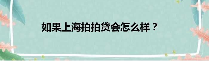 关于如果上海拍拍贷会怎么样?的介绍到此结束,希望对大家有所帮助。