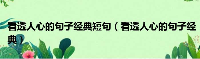 关于看透人心的句子经典短句,看透人心的句子经典的介绍到此结束,希望对大家有所帮助。