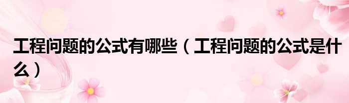 大家好,小纵来为大家解答以上问题。工程问题的公式有哪些,工程问题的公式是什么这个很多人还不清楚,现在一起跟着小编来瞧瞧吧!