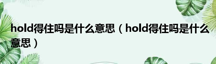 关于hold得住吗是什么意思,hold得住吗是什么意思的介绍到此结束,希望对大家有所帮助。