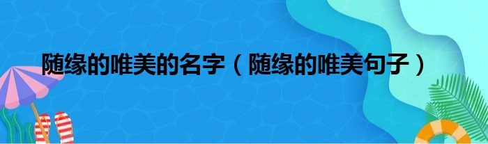 大家好,小纵来为大家解答以上问题。随缘的唯美的名字,随缘的唯美句子这个很多人还不清楚,现在一起跟着小编来瞧瞧吧!
