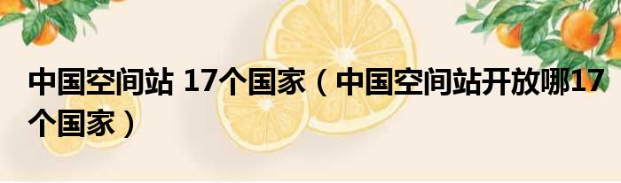 关于中国空间站 17个国家,中国空间站开放哪17个国家的介绍到此结束,希望对大家有所帮助。