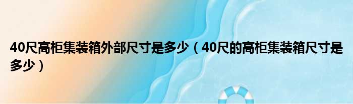 关于40尺高柜集装箱外部尺寸是多少,40尺的高柜集装箱尺寸是多少的介绍到此结束,希望对大家有所帮助。