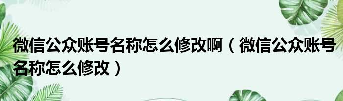 关于微信公众账号名称怎么修改啊,微信公众账号名称怎么修改的介绍到此结束,希望对大家有所帮助。