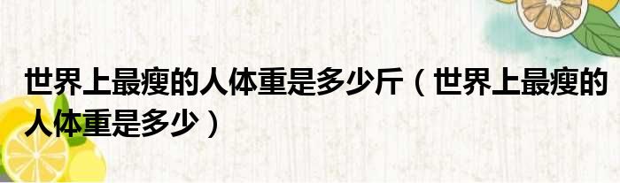 关于世界上最瘦的人体重是多少斤,世界上最瘦的人体重是多少的介绍到此结束,希望对大家有所帮助。
