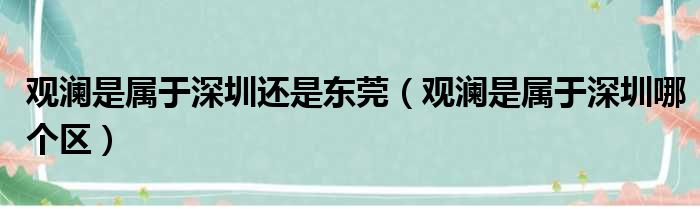 大家好,小纵来为大家解答以上问题。观澜是属于深圳还是东莞,观澜是属于深圳哪个区这个很多人还不清楚,现在一起跟着小编来瞧瞧吧!