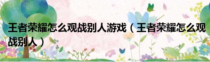 关于王者荣耀怎么观战别人游戏,王者荣耀怎么观战别人的介绍到此结束,希望对大家有所帮助。