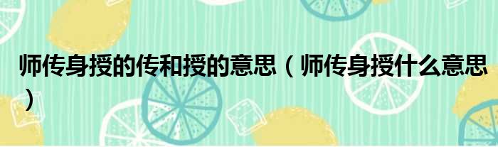 关于师传身授的传和授的意思,师传身授什么意思的介绍到此结束,希望对大家有所帮助。