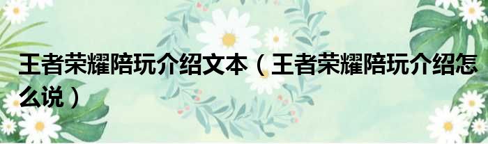 关于王者荣耀陪玩介绍文本,王者荣耀陪玩介绍怎么说的介绍到此结束,希望对大家有所帮助。