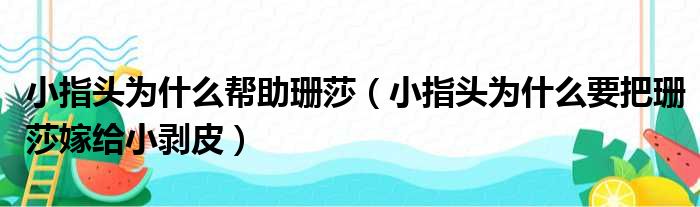 大家好,小纵来为大家解答以上问题。小指头为什么帮助珊莎,小指头为什么要把珊莎嫁给小剥皮这个很多人还不清楚,现在一起跟着小编来瞧瞧吧!