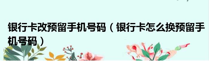 关于银行卡改预留手机号码,银行卡怎么换预留手机号码的介绍到此结束,希望对大家有所帮助。