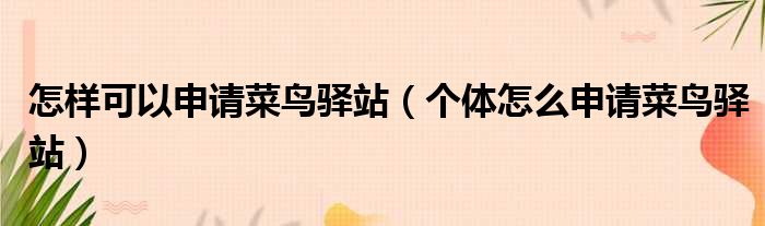 大家好,小纵来为大家解答以上问题。怎样可以申请菜鸟驿站,个体怎么申请菜鸟驿站这个很多人还不清楚,现在一起跟着小编来瞧瞧吧!