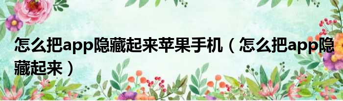关于怎么把app隐藏起来苹果手机,怎么把app隐藏起来的介绍到此结束,希望对大家有所帮助。