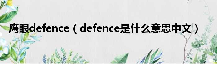 大家好,小纵来为大家解答以上问题。鹰眼defence,defence是什么意思中文这个很多人还不清楚,现在一起跟着小编来瞧瞧吧!