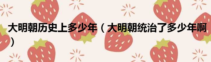 关于大明朝历史上多少年,大明朝统治了多少年啊的介绍到此结束,希望对大家有所帮助。