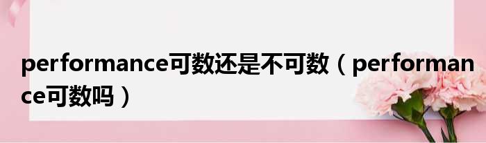 关于performance可数还是不可数,performance可数吗的介绍到此结束,希望对大家有所帮助。