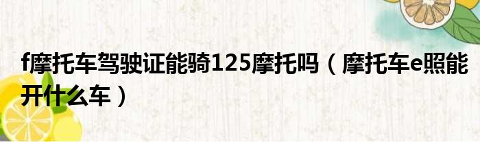 关于f摩托车驾驶证能骑125摩托吗,摩托车e照能开什么车的介绍到此结束,希望对大家有所帮助。