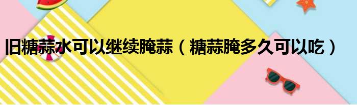 大家好,小纵来为大家解答以上问题。旧糖蒜水可以继续腌蒜,糖蒜腌多久可以吃这个很多人还不清楚,现在一起跟着小编来瞧瞧吧!