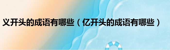 关于义开头的成语有哪些,亿开头的成语有哪些的介绍到此结束,希望对大家有所帮助。