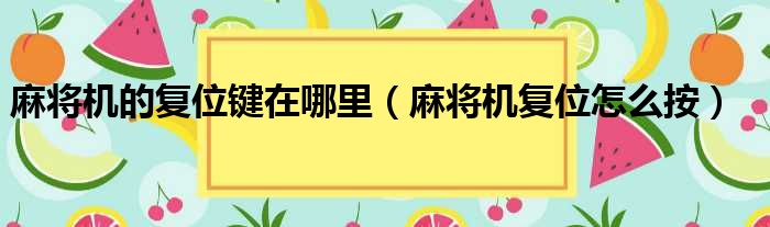 关于麻将机的复位键在哪里,麻将机复位怎么按的介绍到此结束,希望对大家有所帮助。