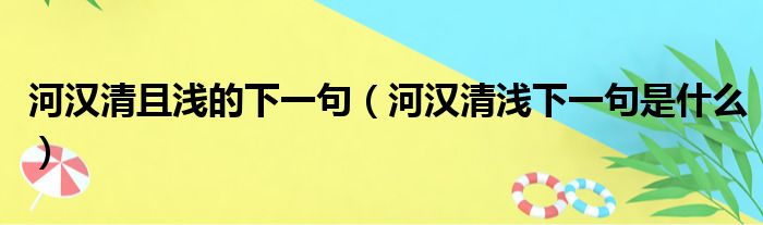 关于河汉清且浅的下一句,河汉清浅下一句是什么的介绍到此结束,希望对大家有所帮助。