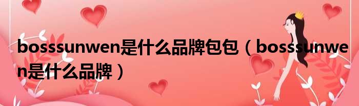 关于bosssunwen是什么品牌包包,bosssunwen是什么品牌的介绍到此结束,希望对大家有所帮助。