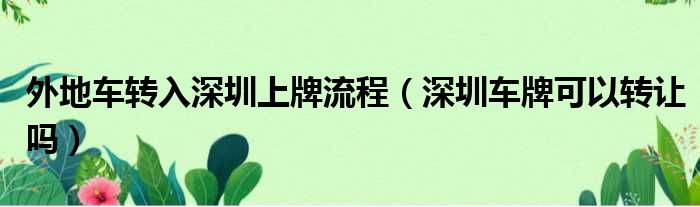 大家好,小纵来为大家解答以上问题。外地车转入深圳上牌流程,深圳车牌可以转让吗这个很多人还不清楚,现在一起跟着小编来瞧瞧吧!