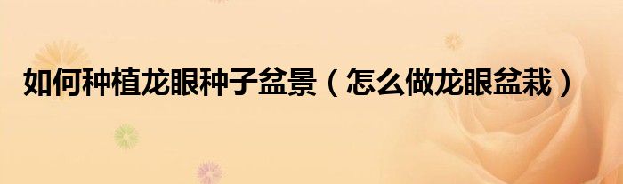 关于如何种植龙眼种子盆景,怎么做龙眼盆栽的介绍到此结束,希望对大家有所帮助。