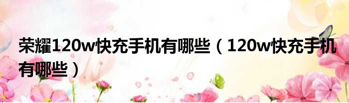 关于荣耀120w快充手机有哪些,120w快充手机有哪些的介绍到此结束,希望对大家有所帮助。