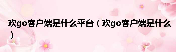 大家好,小纵来为大家解答以上问题。欢go客户端是什么平台,欢go客户端是什么这个很多人还不清楚,现在一起跟着小编来瞧瞧吧!