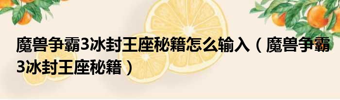 关于魔兽争霸3冰封王座秘籍怎么输入,魔兽争霸3冰封王座秘籍的介绍到此结束,希望对大家有所帮助。
