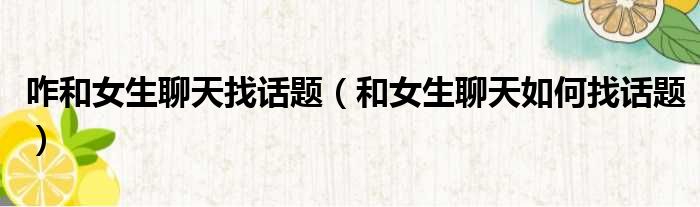 大家好,小纵来为大家解答以上问题。咋和女生聊天找话题,和女生聊天如何找话题这个很多人还不清楚,现在一起跟着小编来瞧瞧吧!
