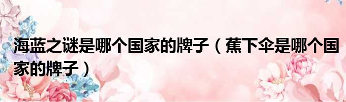 大家好,小纵来为大家解答以上问题。海蓝之谜是哪个国家的牌子,蕉下伞是哪个国家的牌子这个很多人还不清楚,现在一起跟着小编来瞧瞧吧!